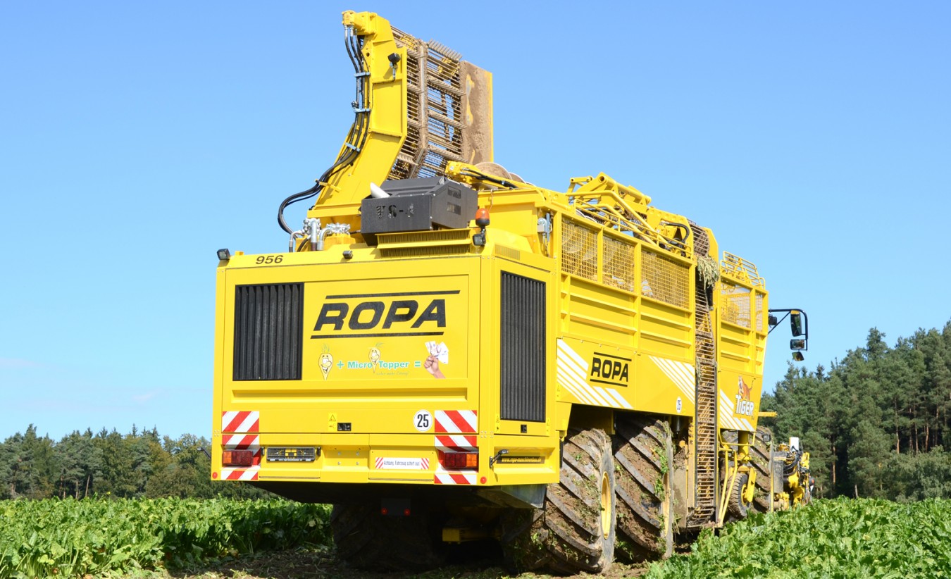 V8-4 ROPA euro-Tiger во всем мире считается одним из самых надежных свеклоуборочных бункерных комбайнов. Благодаря силовой передаче в 440 кВт / 598 л.с. (двигатель Mercedes Benz V8 — с катализатором SCR и AdBlue) на euro-Tiger V8-4, возможно уменьшение расхода топлива и увеличение тягового усилия. Благодаря объему бункера около 40 м³ он может эффективно применяться как на коротких, так и на длинных полях сахарной свеклы. Превосходное сочетание автоматики заполнения бункера и гидравлического регулирования нагрузки на ось (с интегрированной подвеской) обеспечивает оптимальную тягу при улучшенном распределении веса с оптимальной маневренностью при любых условиях сбора урожая.