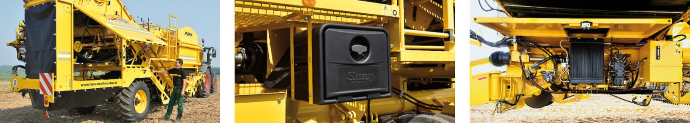 Полногидравлический привод позволяет сохранять и вызывать из памяти задаваемые пользователем настройки машины. Возможность удобной адаптации к специфическим для клина условиям или переключения программы столового картофеля или картофеля на крахмал посредством нажатия кнопки.