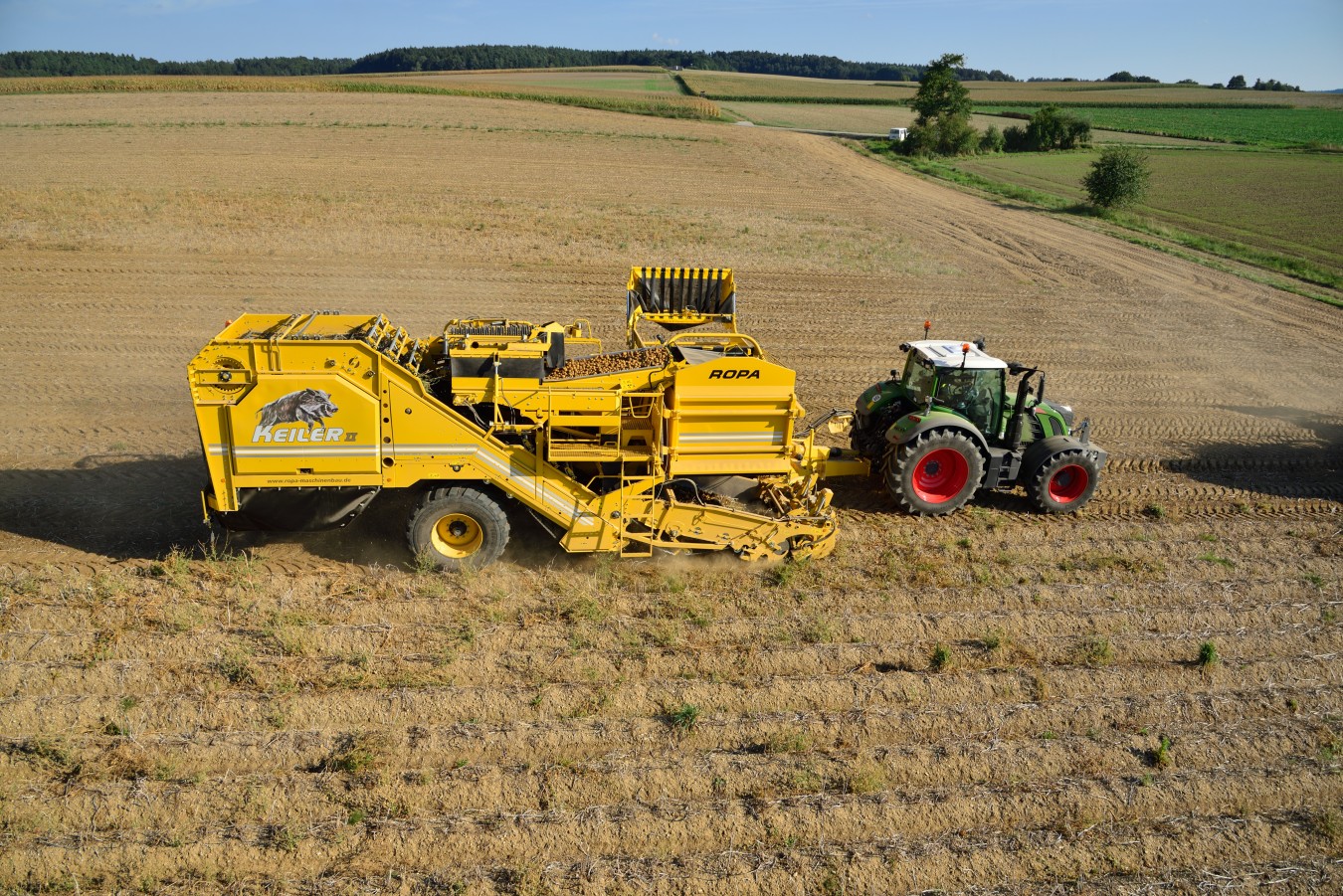 ROPA Keiler 2 — это 2-рядный прицепной картофелеуборочный комбайн с бункером объемом примерно 7,5 т. Кроме новых детальных решений, Keiler 2 оснащен полногидравлическим приводом, способствующим оптимизации настроек сепарирования и очистки. В Keiler 2 независимо от числа оборотов ВОМ все системы очистки сохраняют оптимальную скорость. Результат — меньше топлива при пониженном числе оборотов двигателя трактора.