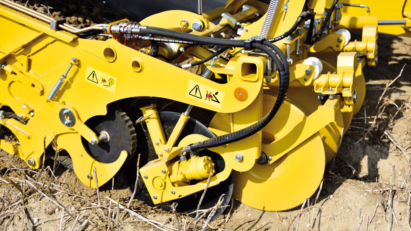 - Серийно разгрузка давления на гребень, а также регулировка давления на гребень в сочетании с гидравлической регулировкой глубины копки