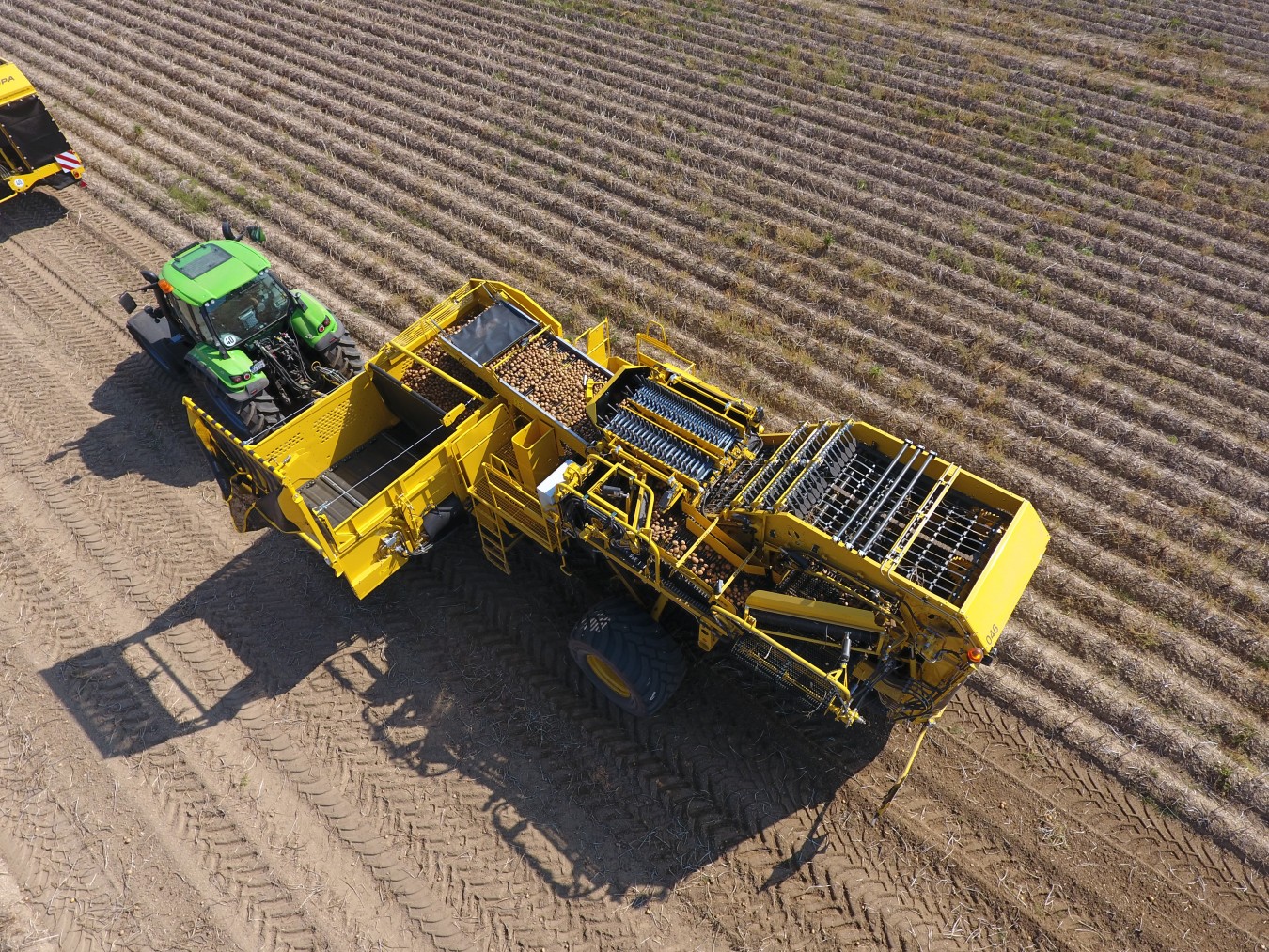 - Регулируемое соотношение числа оборотов транспортера для ботвы и просеивающего транспортера 2