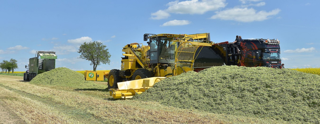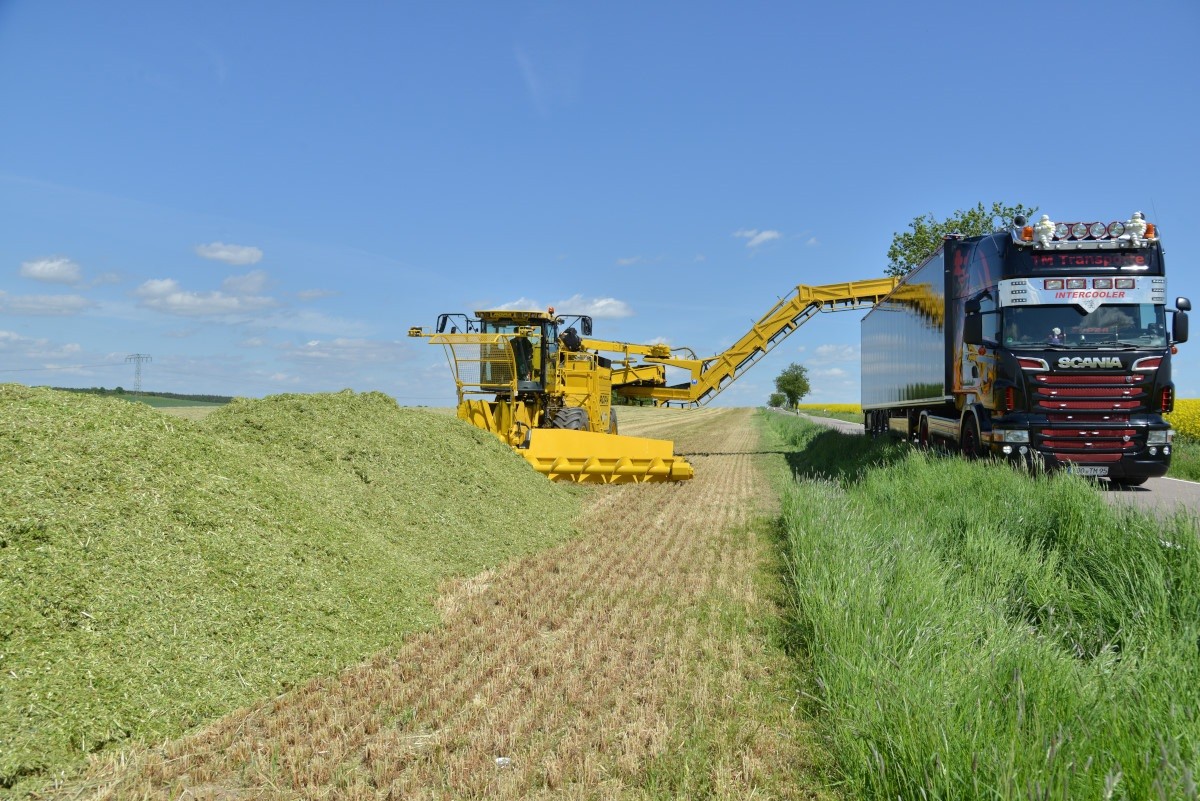 В большинстве случаев высокая производительность при урожае кукурузного силоса ограничивается из-за нехватки или небольших объемов транспортных средств для вывоза урожая. В частности, для больших биогазовых установок с высоким сочетанием кукурузного субстрата в рационе, совершать его доставку на большие дистанции с прицепными сельскохозяйственными машинами является экономически нецелесообразным. Кроме того, для профессиональных биогазовых установок существует правовое транспортное разрешение, которого следует придерживаться. Наиболее малозатратным транспортом для транспортировки измельченного груза являются, как правило, грузовые автомобили. Однако, они не должны нагружаться в поле и вовсе не должны ехать рядом вместе с измельчителем.