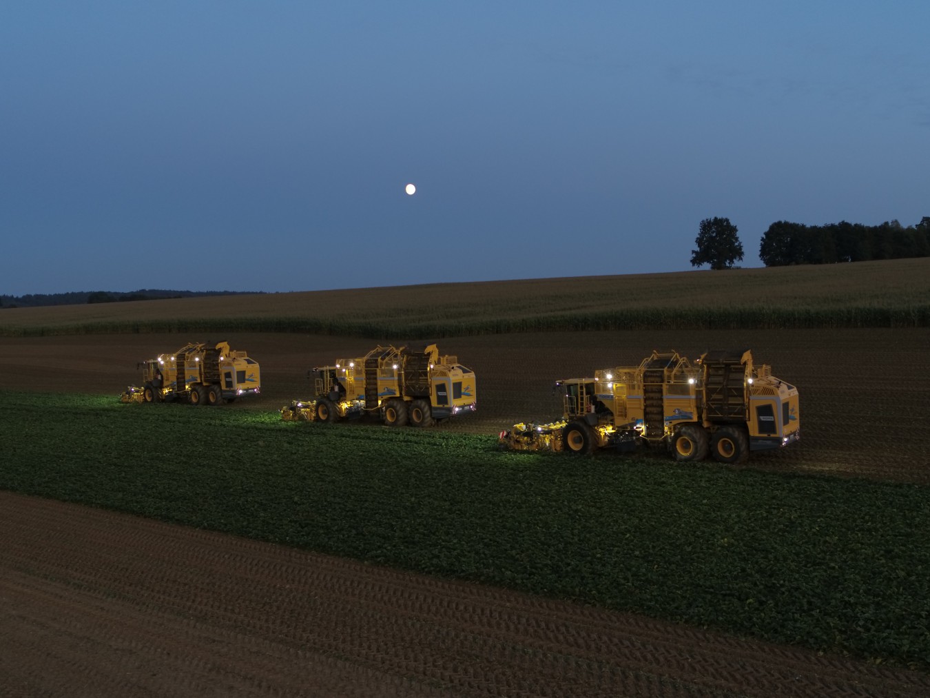 Уникальной среди 3-осных свеклоуборочных комбайнов также является автоматическая система выравнивания комбайна с помощью шести гидравлических цилиндров и датчиков. Шасси остается в полностью горизонтальном положении при наклоне до 10%. Центр тяжести, а вместе с ним и нагрузка на колеса с нижней стороны склона смещаются на верхнюю сторону.