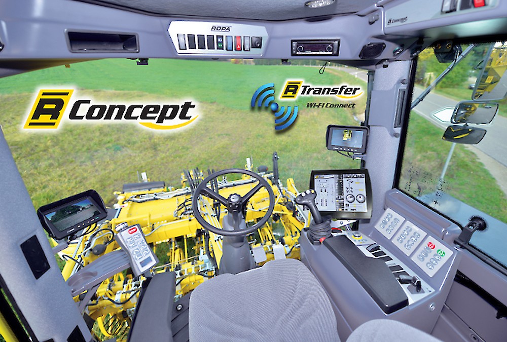 Под определением R-Concept компания ROPA объединила интуитивно понятный подход в эксплуатации. Большой 12,1 дюймовый сенсорный экран представляет собой информационный и командный центр машины. Отсюда водитель контролирует всю машину, получает информацию о рабочем состоянии и данные производительности. Управление производится двумя способами, либо пальцем на сенсорном экране, либо вращением и нажатием поворотных кнопок «R-Select» и «R-Direсt», которые эргономически идеально расположены на новой панели управления в области ручки многофункционального джойстика.